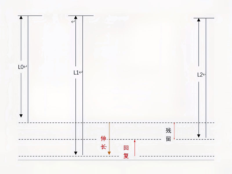 伸長回復(fù)率(%)=(L?- L?)/(L?- L。)×100%